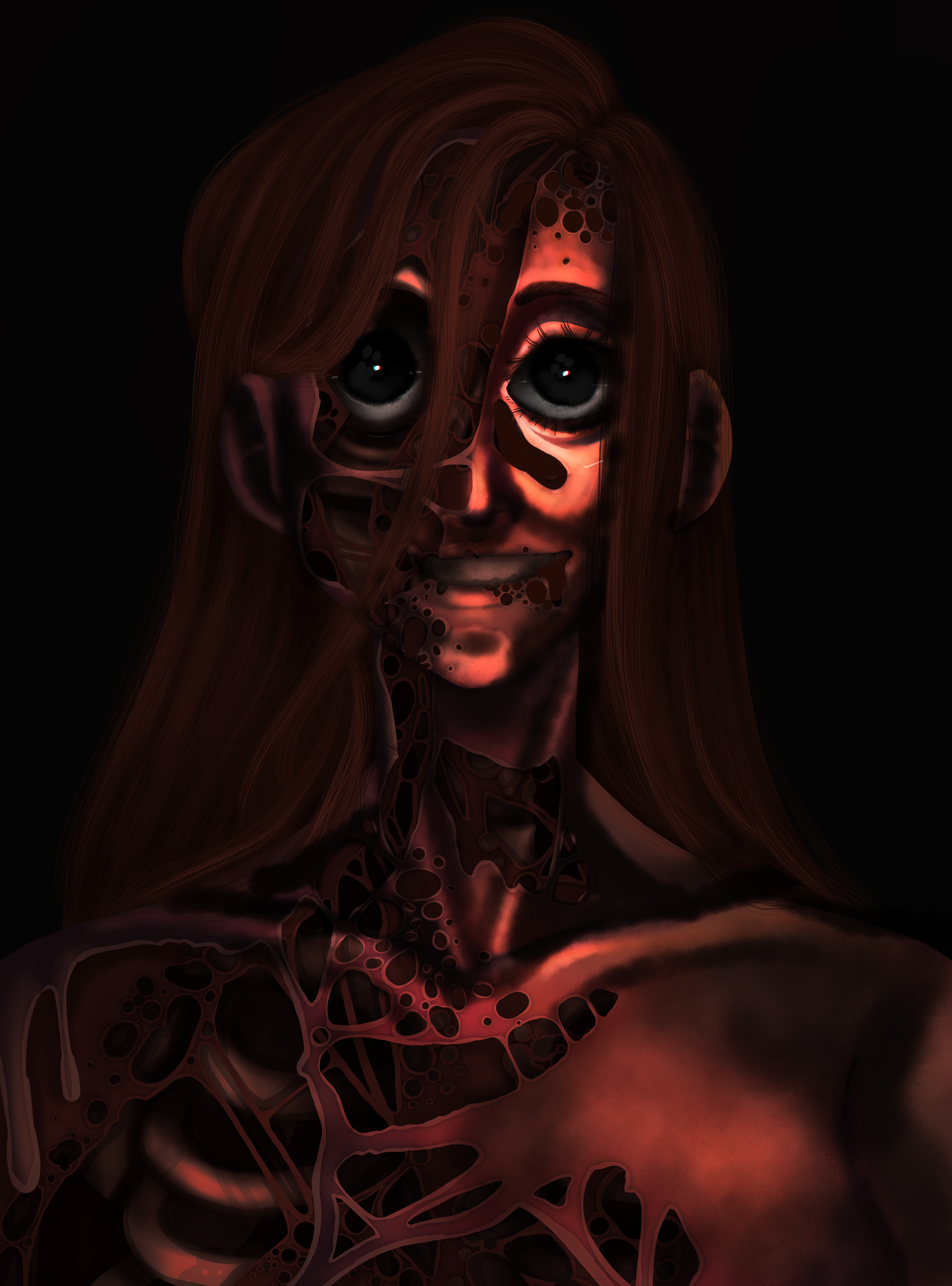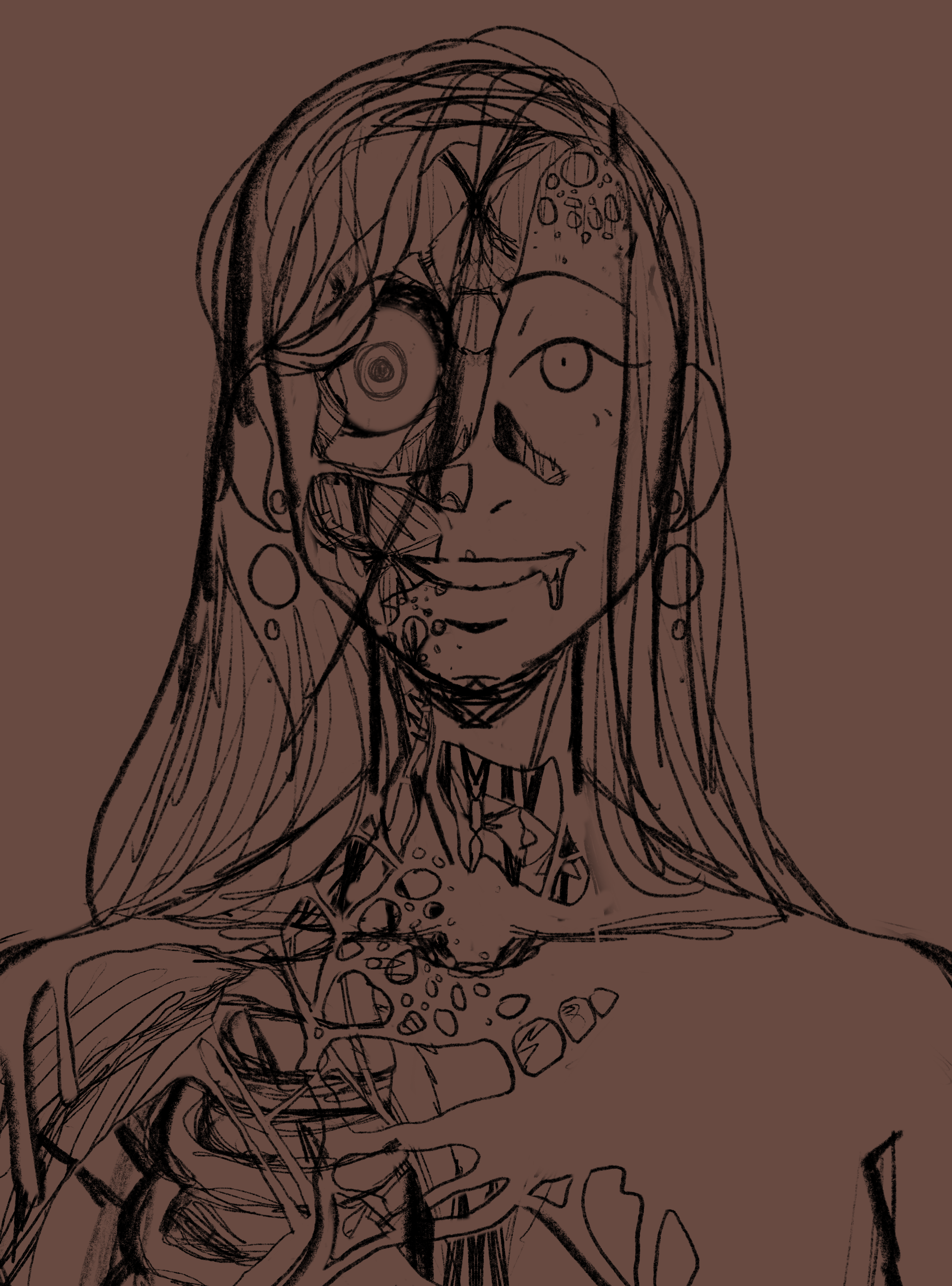This is a piece of concept art I made while watching the movie ‘The Thing’. I really enjoyed the body horror within the movie and decided to make my own version of the creature. This piece did not really have clean line art, after the sketch I went straight to blocking out the colors and adding some shading over it. This took about 4 hours.